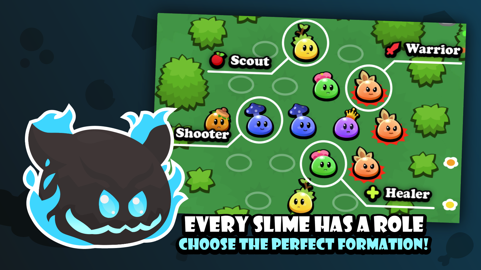 Find houses in which slimes are hiding and take them to your squad. All slimes have strengths and weaknesses, it is important to consider where the slime will stand in the squad.