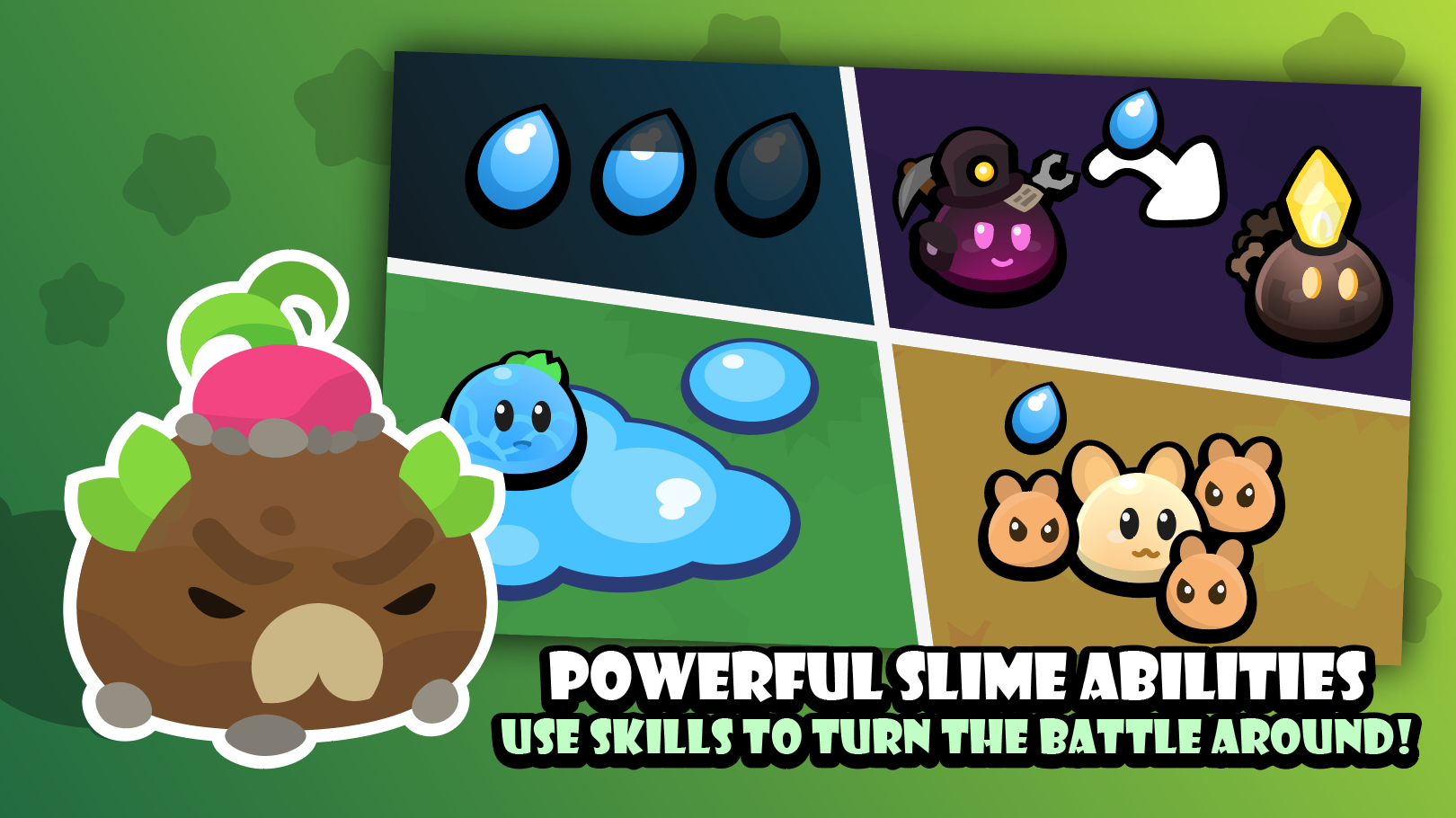Travel the world, collect apples and water to survive and improve your squad. Apples are the slimes' currency, and water is their energy. Slimes can use magic if they have enough water.